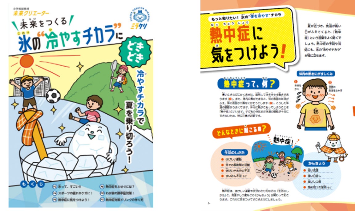 小久保製氷冷蔵株式会社(KOKUBOグループ、千葉県八千代市、代表取締役社長:酒井 東洋士、以下小久保製氷)は、教育分野における地域・社会貢献を目的に、2025年6月より東京・大阪など小学校4・5・6年生の児童を対象に小学校副教材「未来クリエーター氷の”冷やすチカラ”にどきどき」を100,000部配布します。熱中症の正しい知識や対処法、またスポーツアイシングなど「ロックアイスⓇ」の活用術や身近にある氷の”冷やすチカラ”を知って頂き、生活に役立てて頂ける内容です。また「氷のキャラクター」絵画コンテストを実施し、2025年10月以降に結果を発表します。
