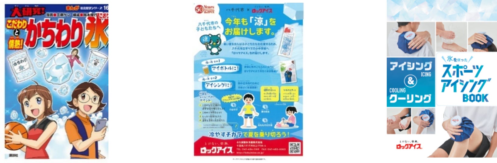 KOKUBOグループは、ロックアイスの「冷やすチカラ」で社会貢献活動を実施しています。千葉県の中学校を対象とした交流授業の実施や全国の小学校への書籍の寄贈、また熱中症対策やスポーツアイシングを訴求する冊子の配布をしています。また八千代市内の小学校・中学校にロックアイスの提供し、夏場の熱中症対策に活用頂いています。