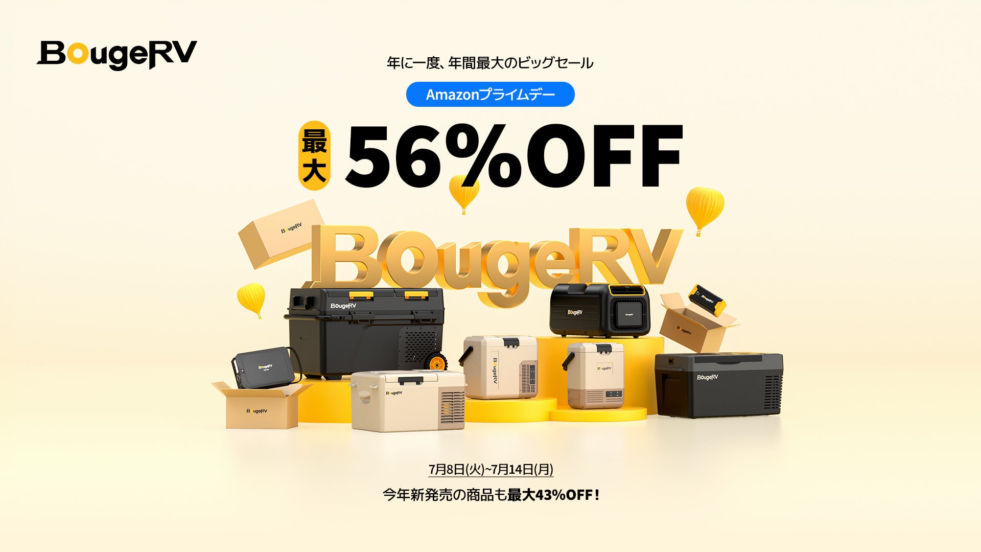 アウトドア生活ソリューションを提供するISSYZONE JAPAN株式会社(本社:東京都台東区、取締役社長:王冲衡、日本語読み:イシーゾン)が展開するブランド、BougeRV(日本語読み:ボージアールブィ)は、2025年7月8日(火)から7月14日(月)まで、アマゾンにて開催される年間最大のビッグセール「プライムデー」において、最大56%OFFの大幅割引キャンペーンを実施いたします。