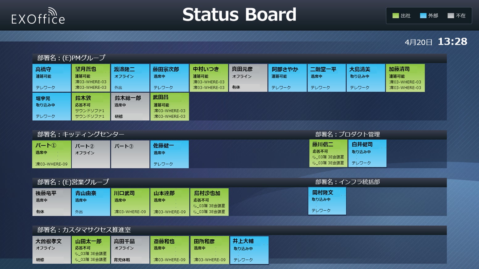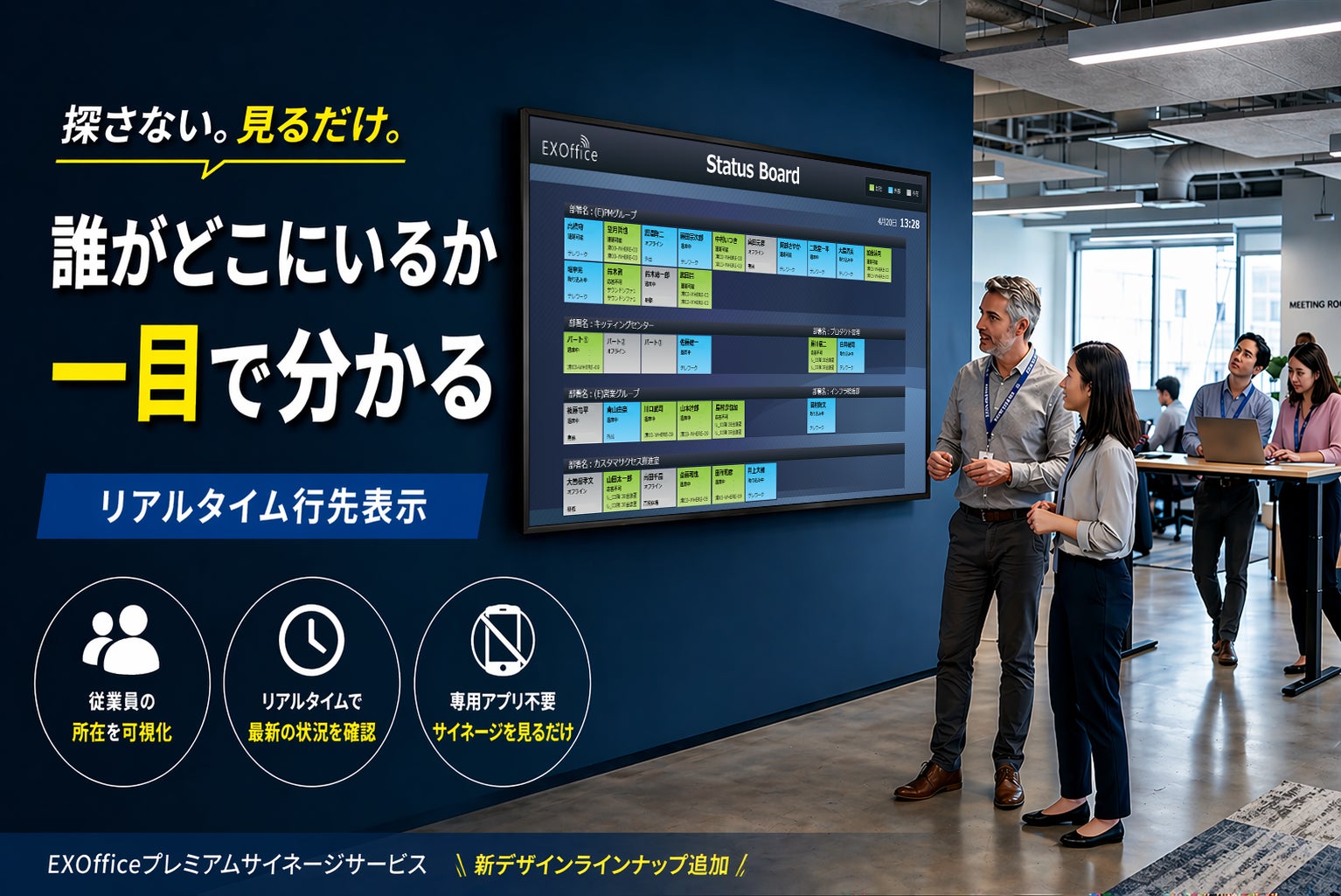 「誰がどこにいるか」を一目で可視化!EXOfficeプレミアムサイネージに新たな表示ラインナップを追加