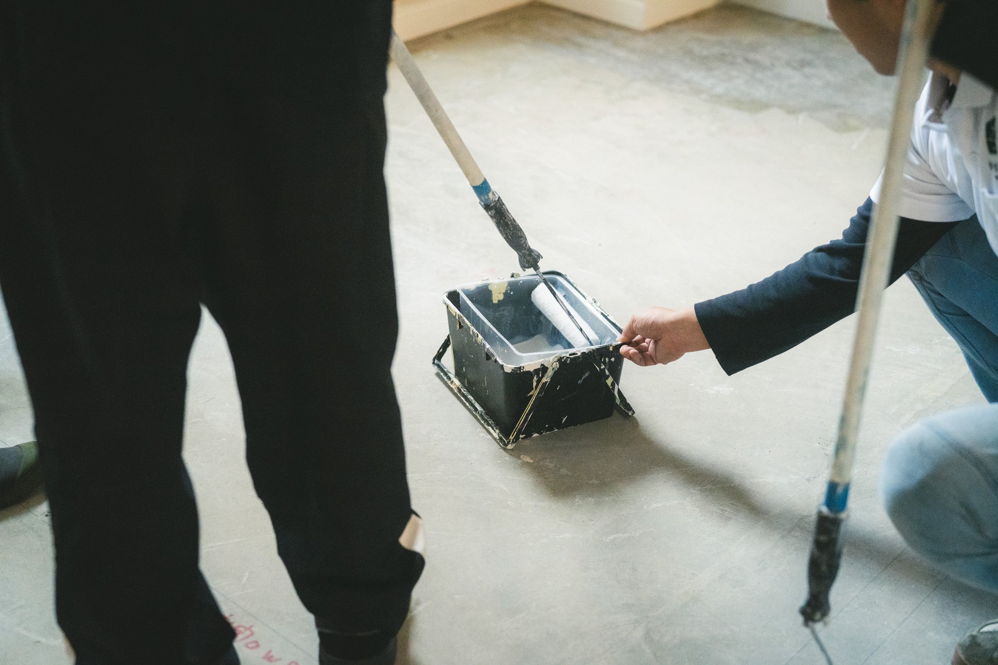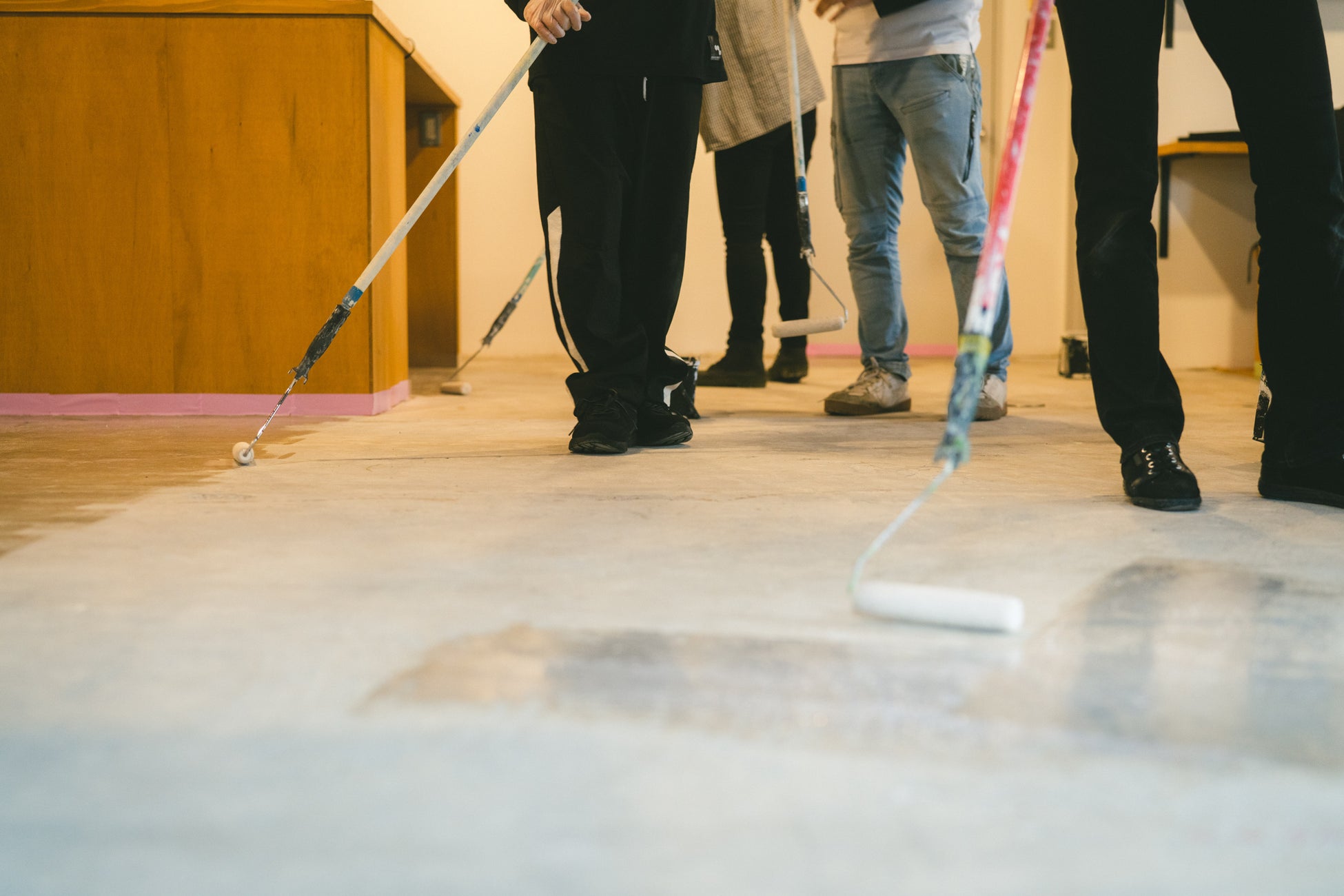 本ワークショップでは、2025年4月にオープンを予定している障害福祉事業所「SOCIALSQUARE草加谷塚」の内装工事の一環として、床の塗装仕上げを参加者の方と行いました。