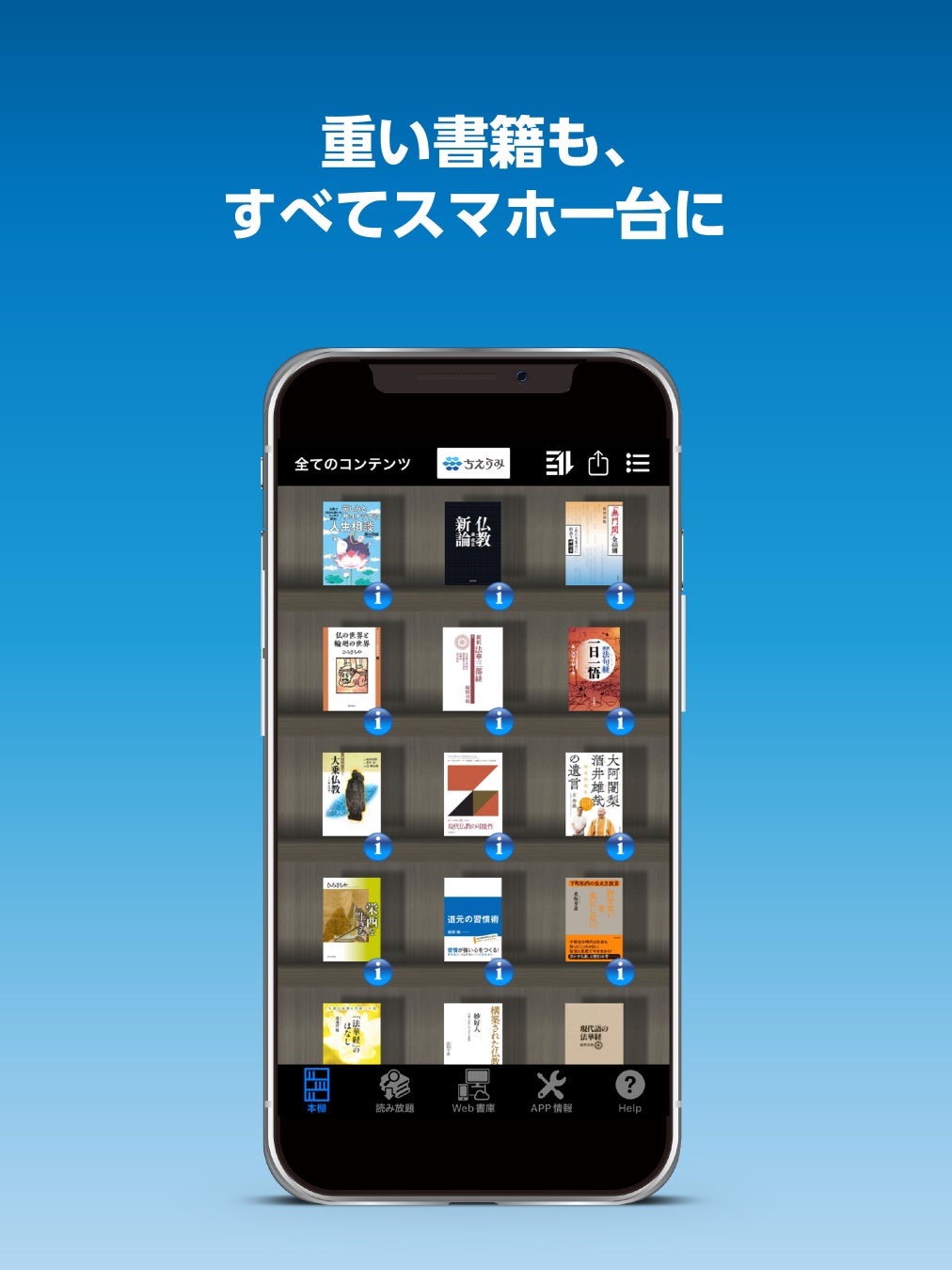 仏教書を中心に、宗教書・哲学書などを取り扱う専門書店。電子書籍を販売し、専用アプリを通じてコンテンツを提供している。ECサイトから24時間コンテンツを購入することができ、アプリならではの便利機能を活用し、スマートフォンやタブレット・PCでいつでもどこでも利用可能。
