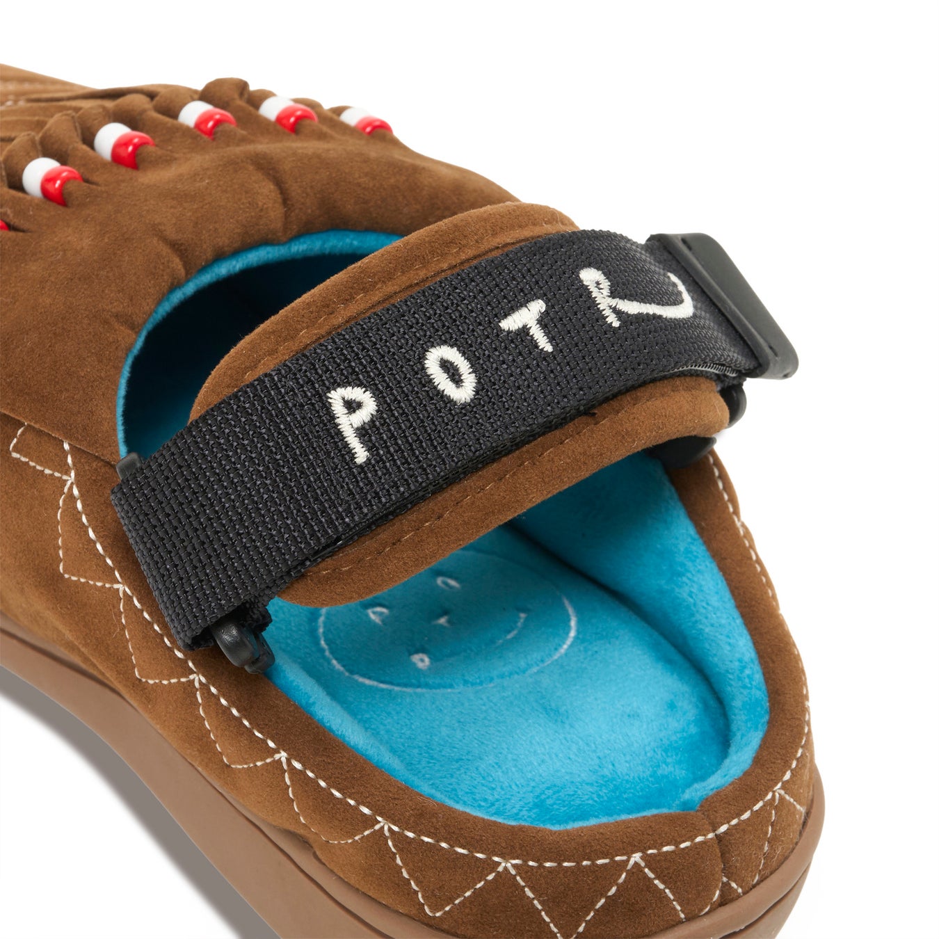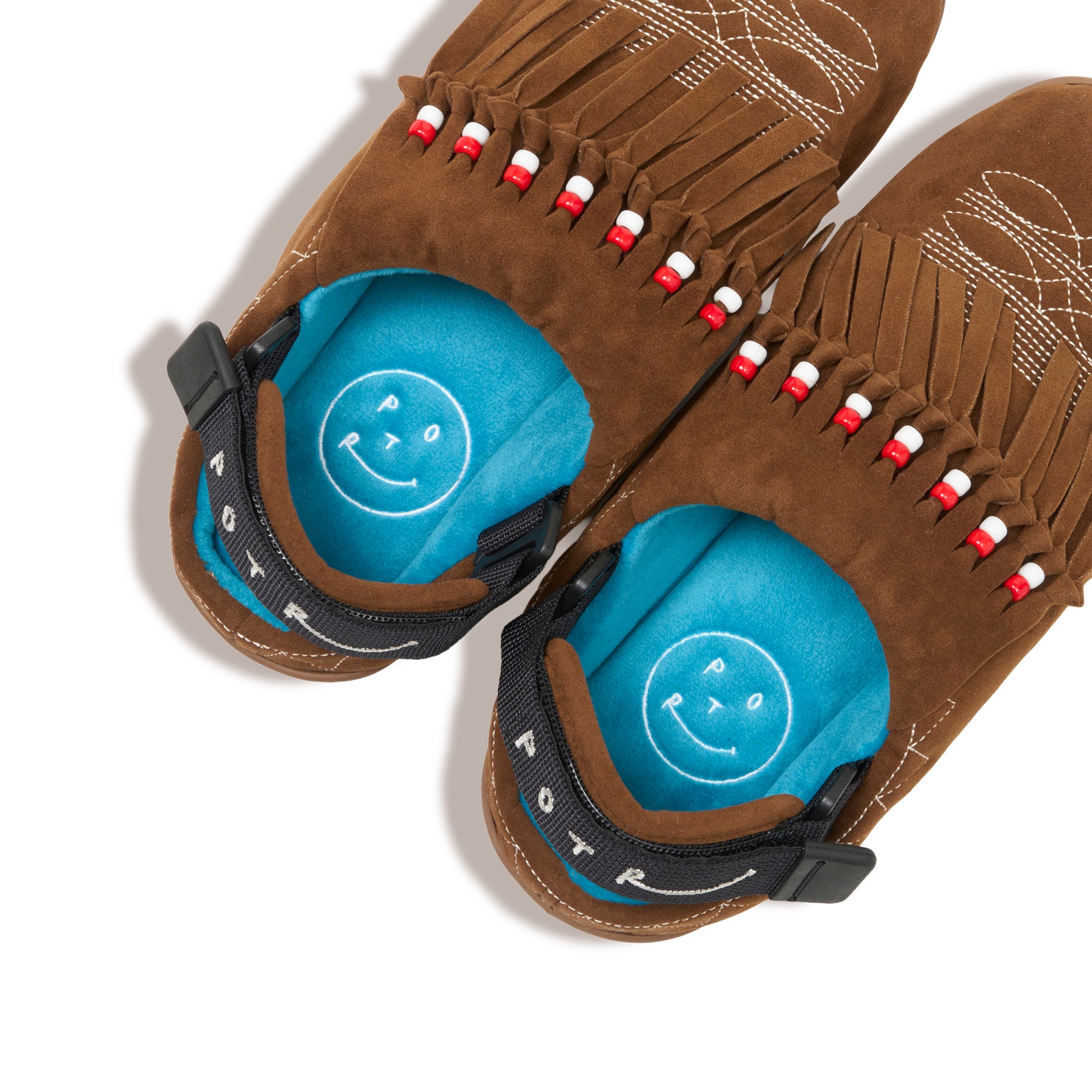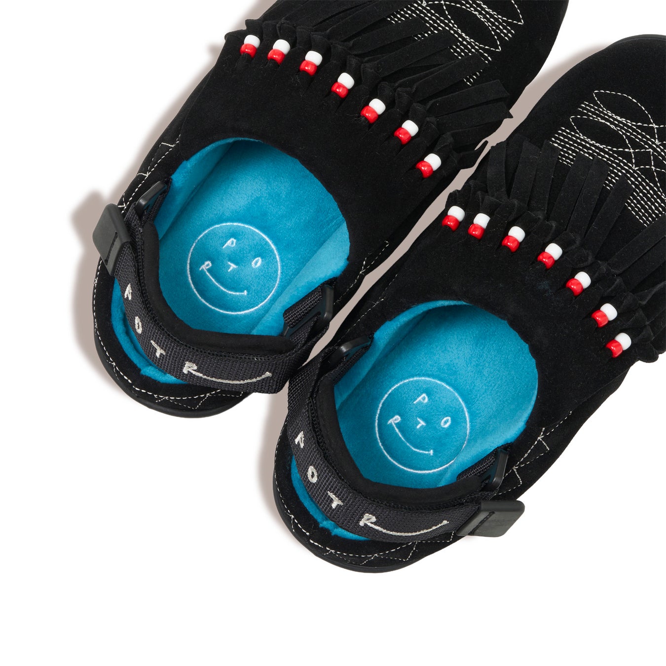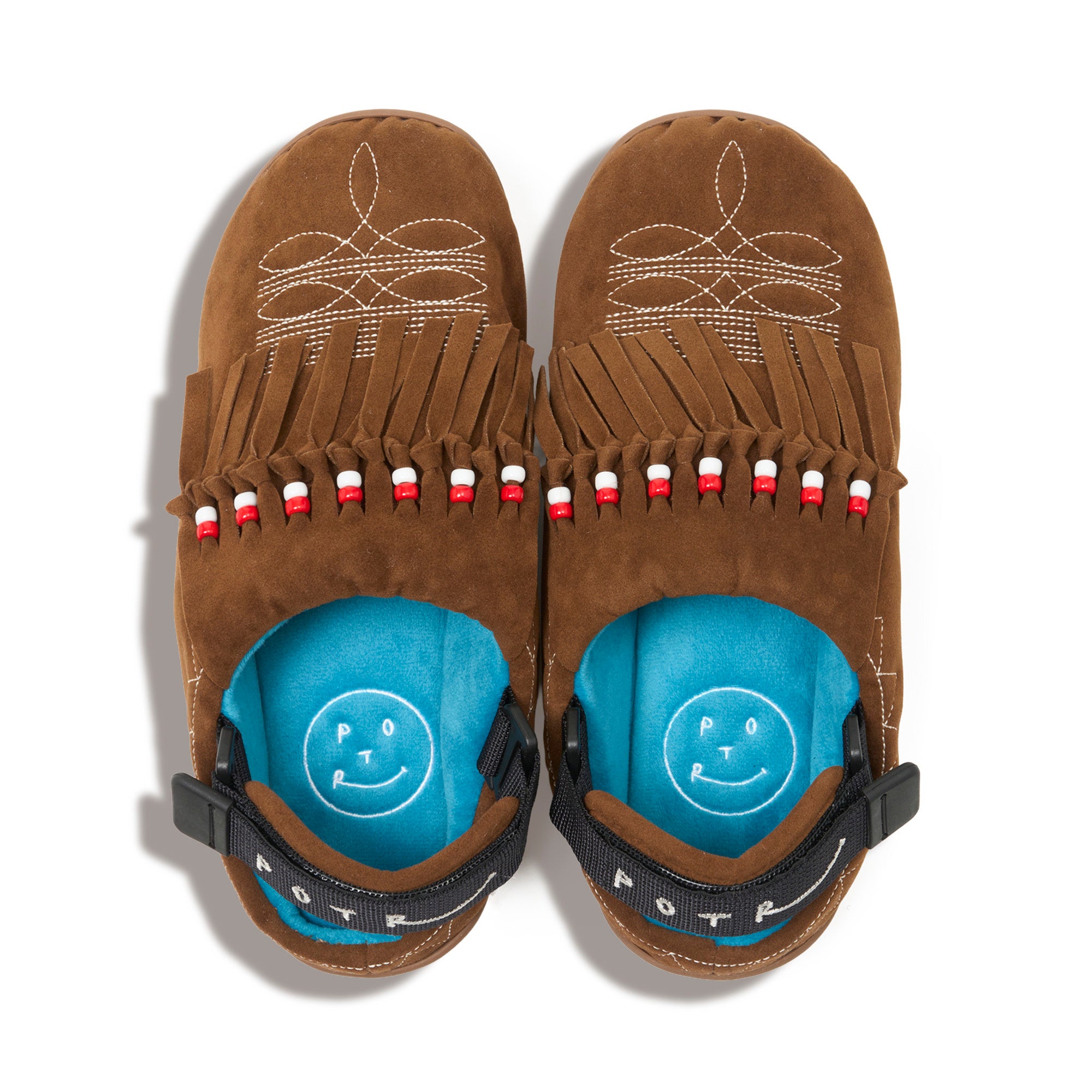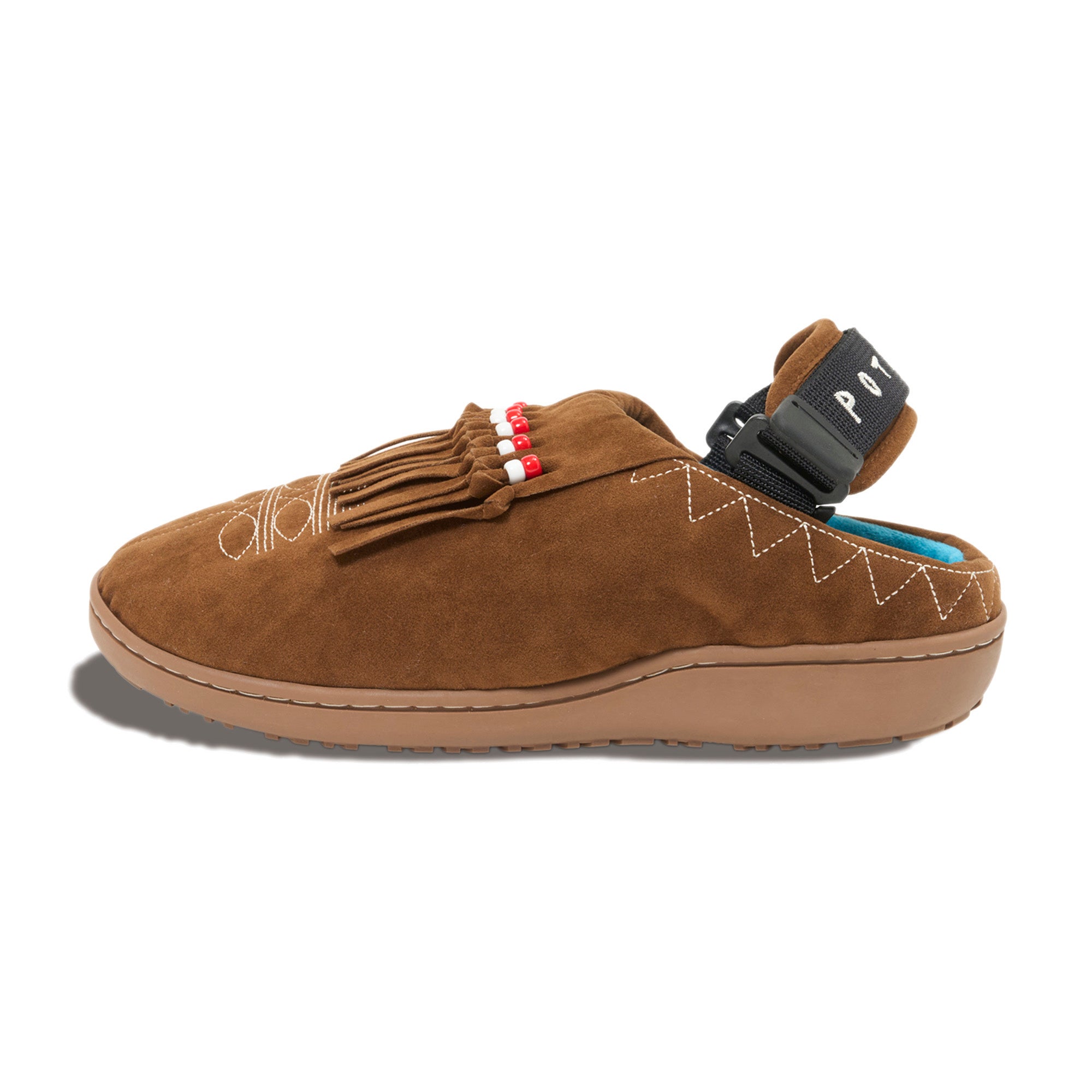 ネイティブアメリカンならではのフリンジや刺繍、ビーズを施し、フットベッドにはPOTRを象徴するターコイズブルーを採用しました。