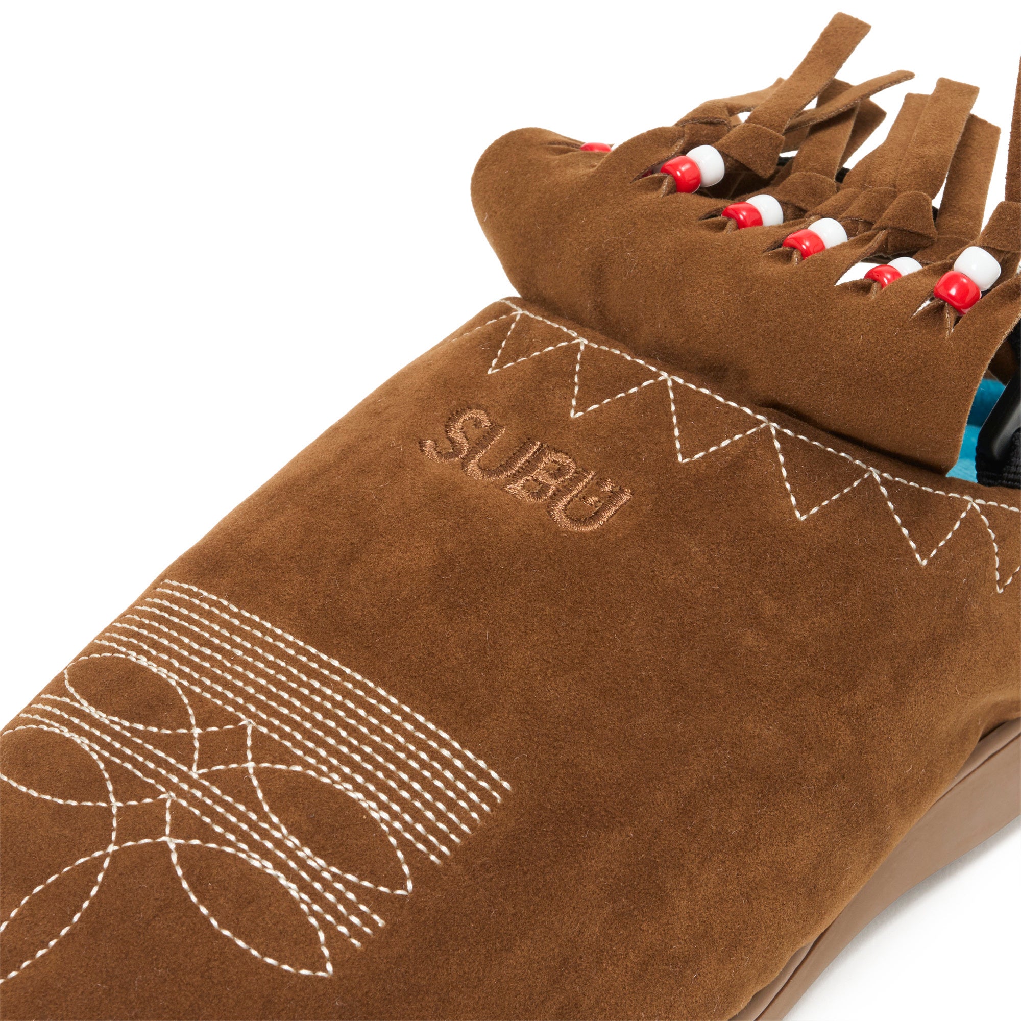 当時のネイティブアメリカンたちが、現代の技術によって最高の履き心地とクッション性を実現したSUBUを履いたらどう思うのか?と想像しながら製作した遊び心溢れるアイテムです。