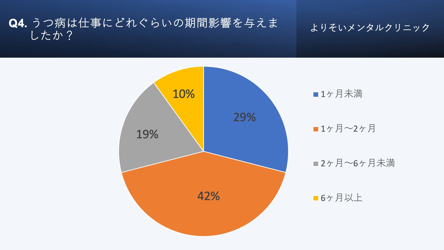うつ病経験者に対して、うつ症状がどれくらいの期間継続したのか調査しました。