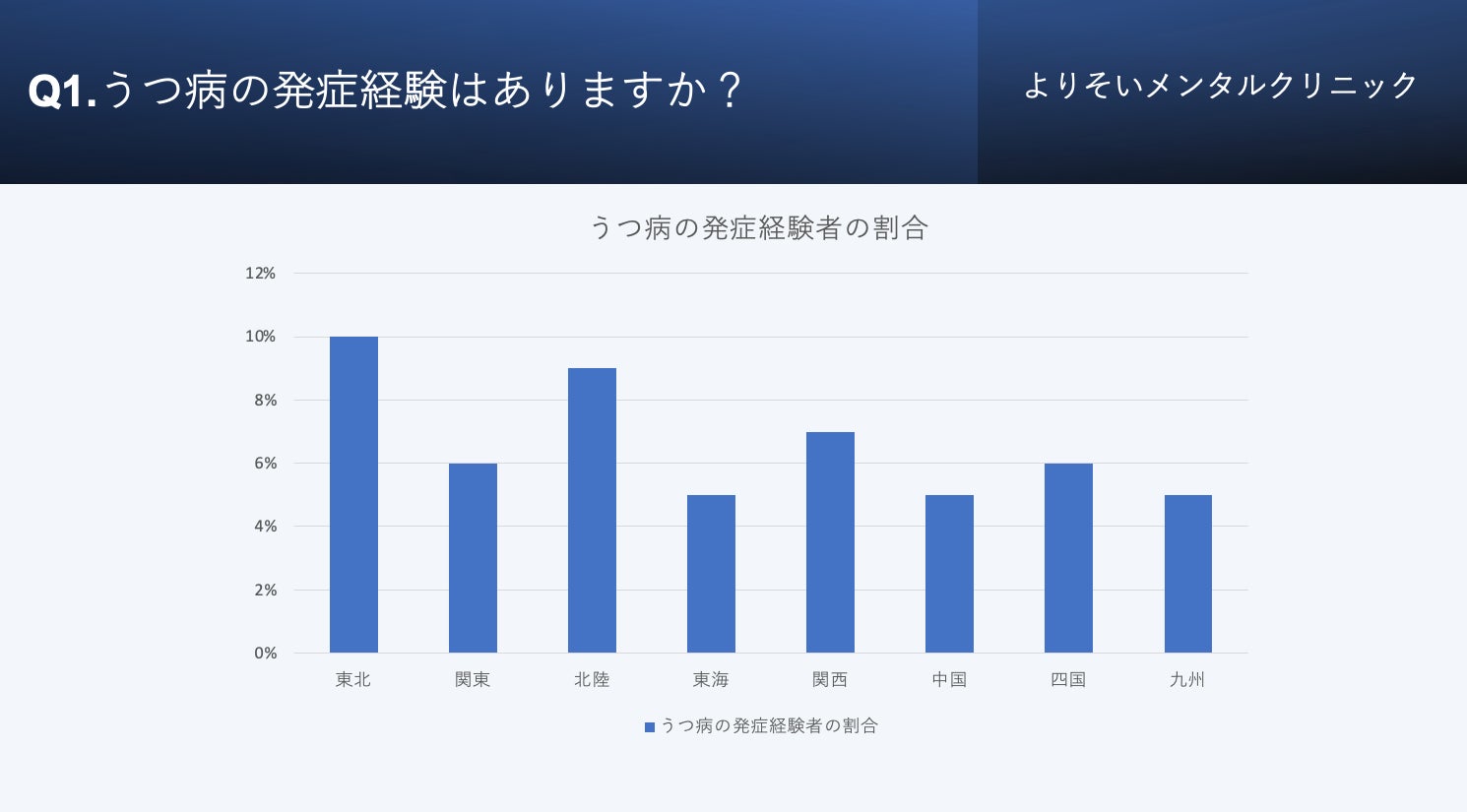 各地域におけるうつ病の発症経験者の割合を調査しました。