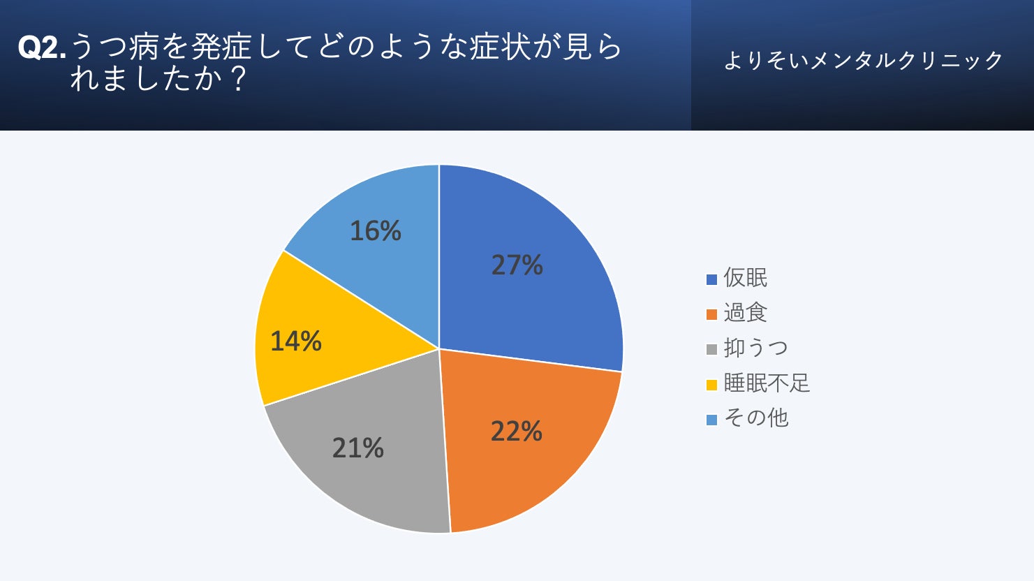 その結果、過眠や過食などの症状を感じた方が多くいることが分かりました。