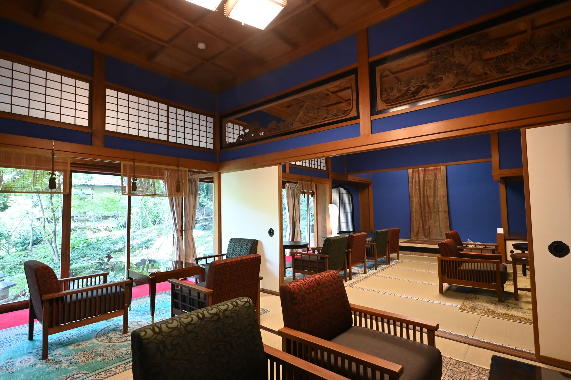 2021年より大規模な修復工事が行われ、伝統的な和風建築の意匠を活かしつつ、現代の文化観光拠点として生まれ変わりました。館内では、金唐革紙や井波彫刻をはじめとする日本の伝統技術を紹介する展示や、昭和天皇が使用された食器など貴重な史料を公開。さらに、地元作家による工芸品の販売も行っており、伝統と現代の美が交差する空間となっています。