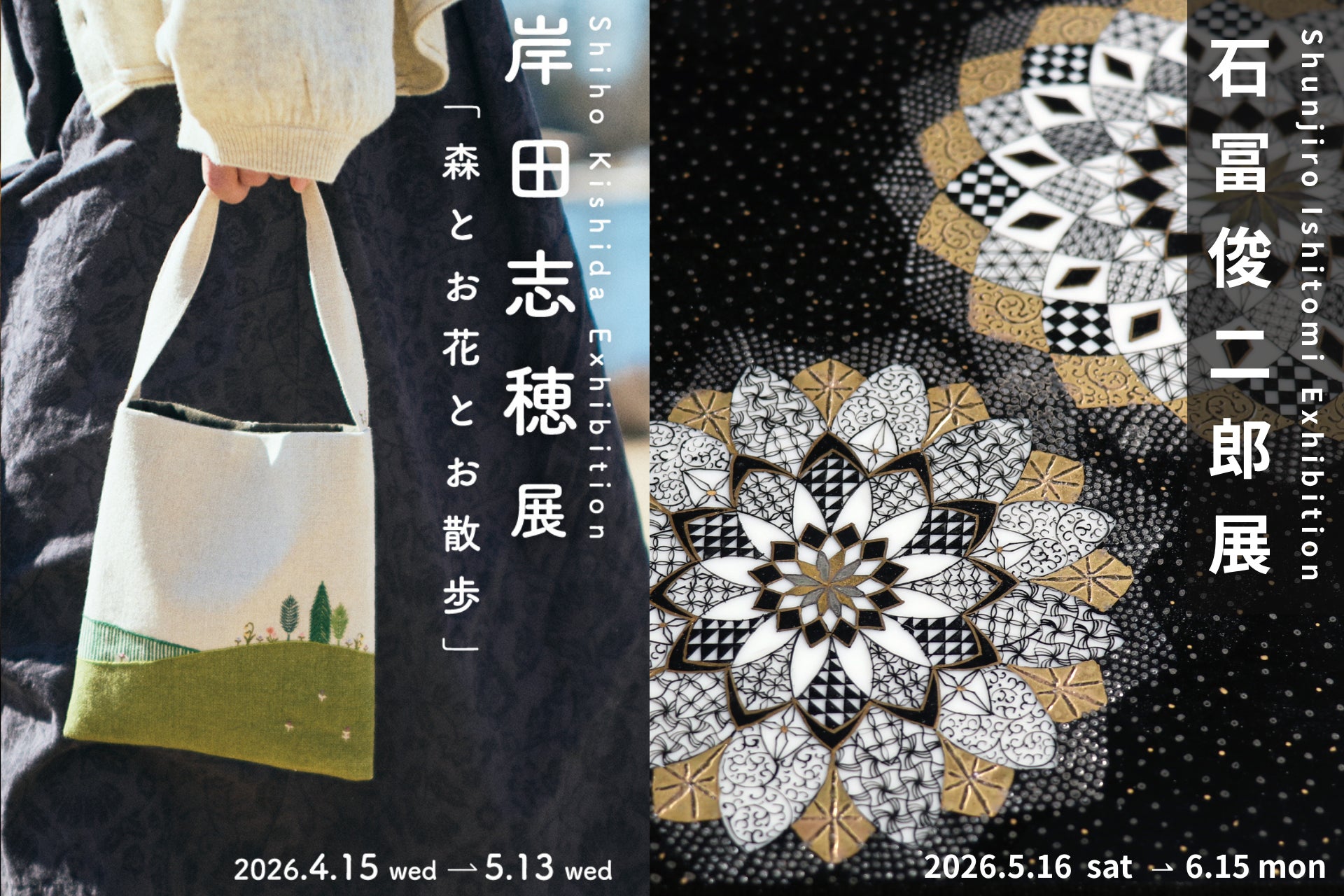 【加賀依緑園】森と草花の記憶を布に映す『岸田志穂 -森とお花とお散歩展-』(開催中~2026年5月13日)/自由な発想が広がる九谷焼『石冨俊二郎展』(5月16日~)