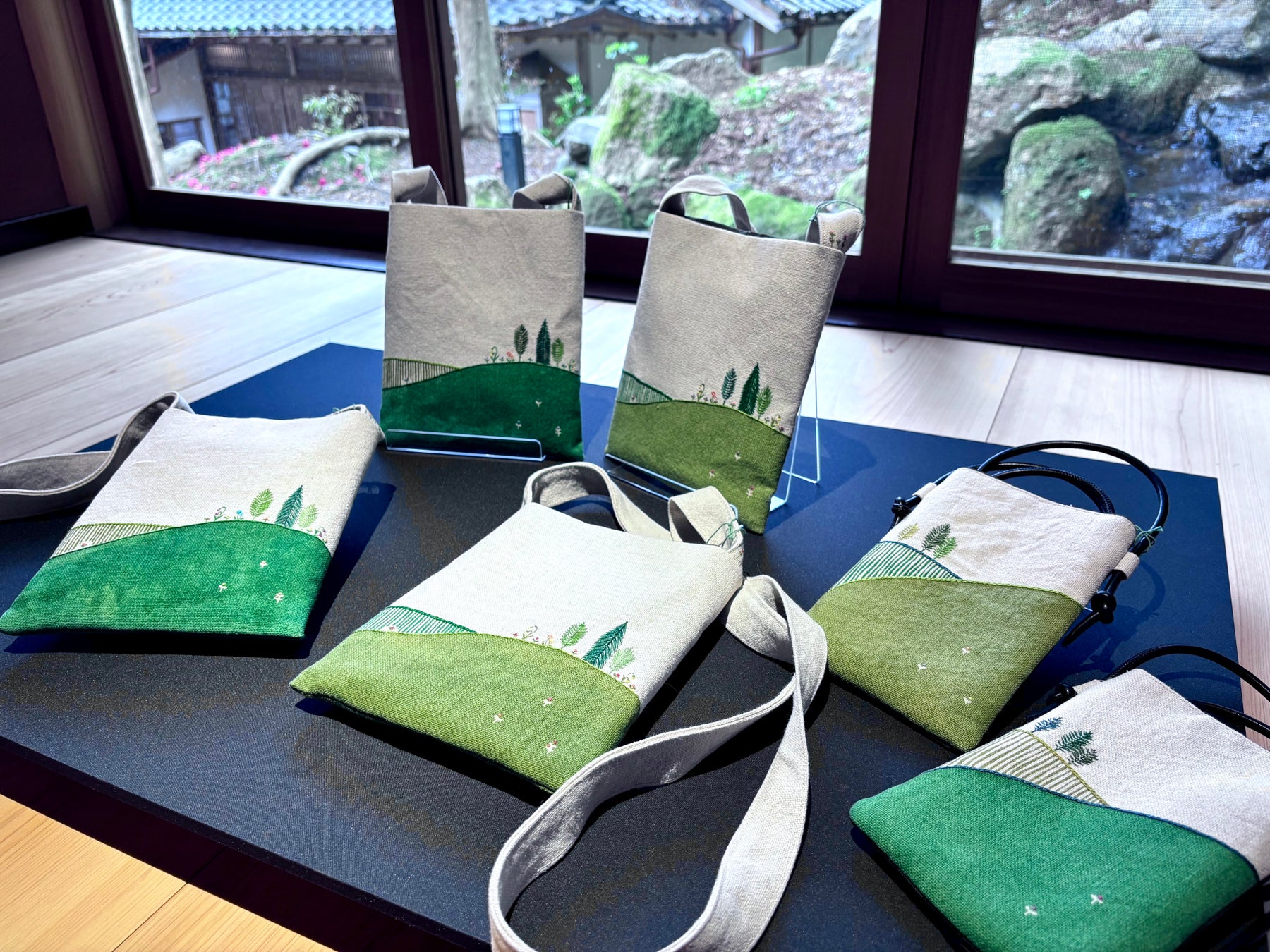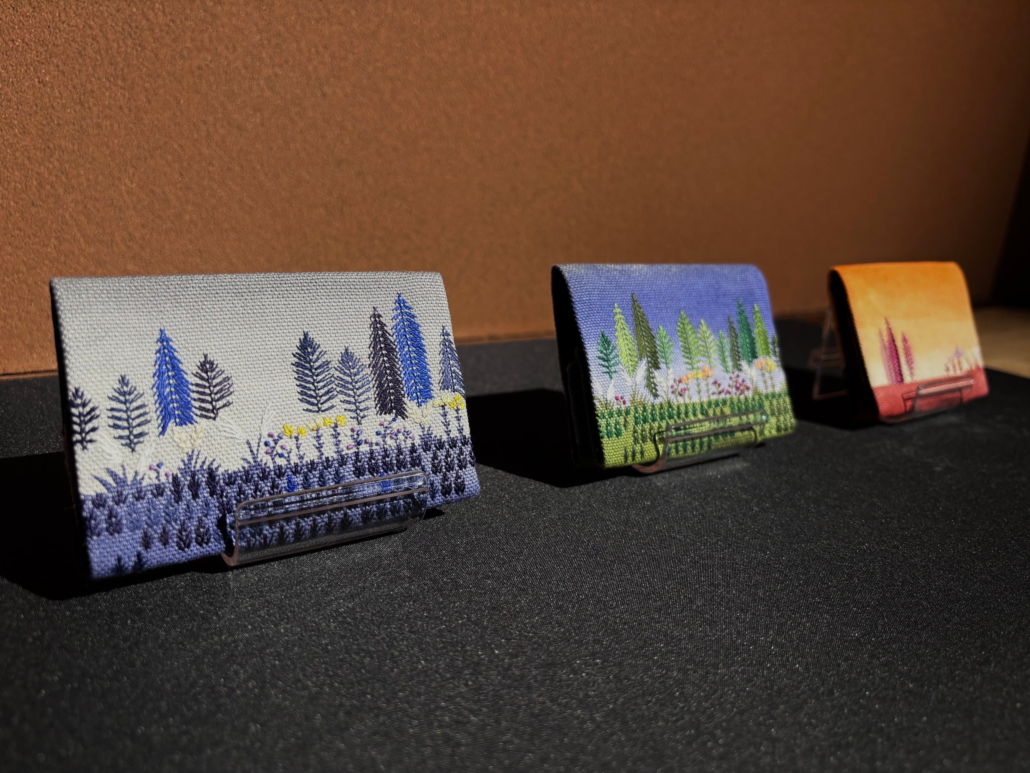 現在開催中の『岸田志穂 -森とお花とお散歩展-』では、石川県金沢市を拠点に活動する染色・刺繍作家、岸田 志穂氏による個展を実施しています。捺染や手刺繍で制作したアクセサリー、バッグなどの布小物や額など約100点を展示し、野原や森、草花を思わせる、どこか懐かしくやわらかな世界観をご紹介しています(開催中~2026年5月13日[水])。