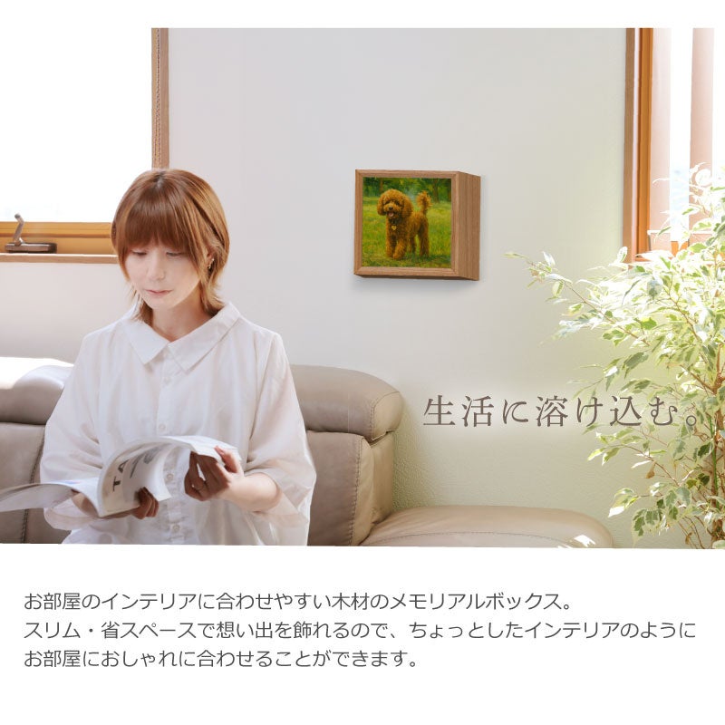 木のぬくもりと、優しく加工された一枚の肖像画のようなアクリルパネルが、心にそっと寄り添い続けてくれることでしょう。
