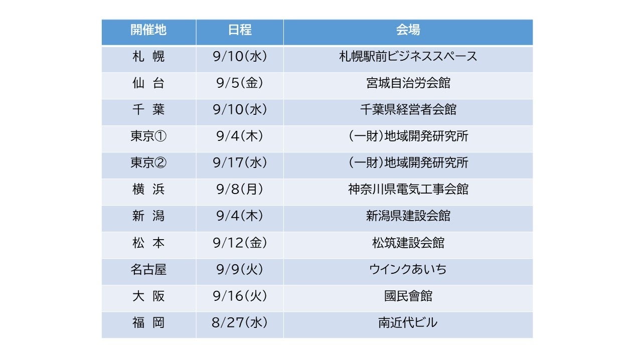 一般財団法人地域開発研究所(東京都文京区、理事長:青柳一郎)では、「1級電気工事施工管理技術(第二次検定) 受検講習会」を2025年8月末から9月中旬まで全国主要10都市(11会場)で開催します。