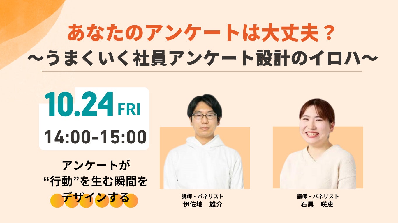 【10月24日㈮開催】あなたのアンケートは大丈夫?~うまくいく社員アンケート設計のイロハ~