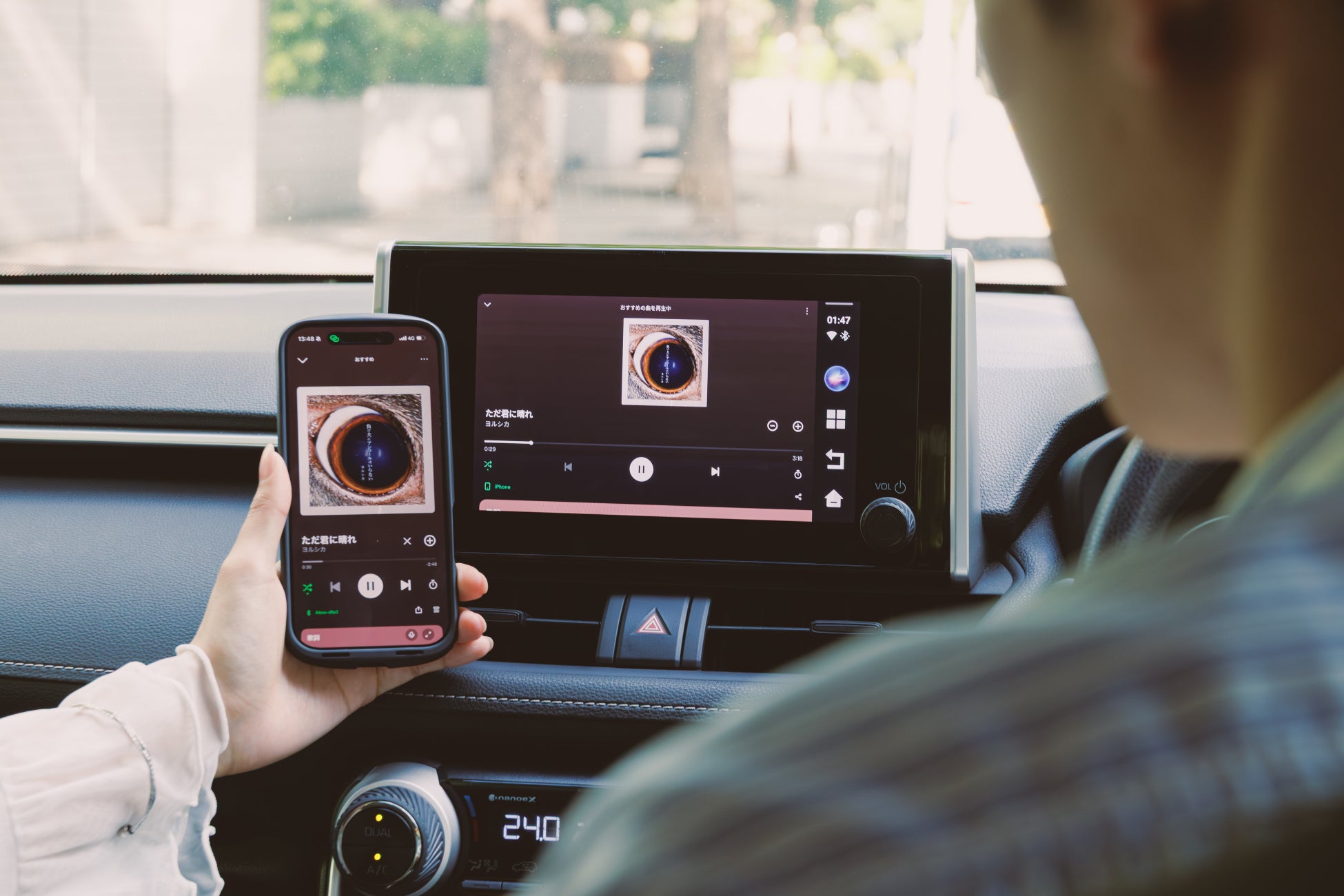 運転中の情報確認とエンタメ操作を同時に行えるため、画面の切り替えによる手間を減らし、よりスムーズな操作が可能です。