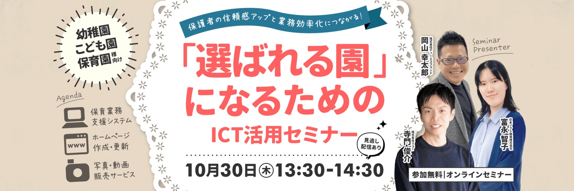 本セミナーは、これらの課題をICTの力で解決し、園の運営における「業務効率化」と、保護者からの「信頼感アップ」を同時に実現することを目的に開催いたします。