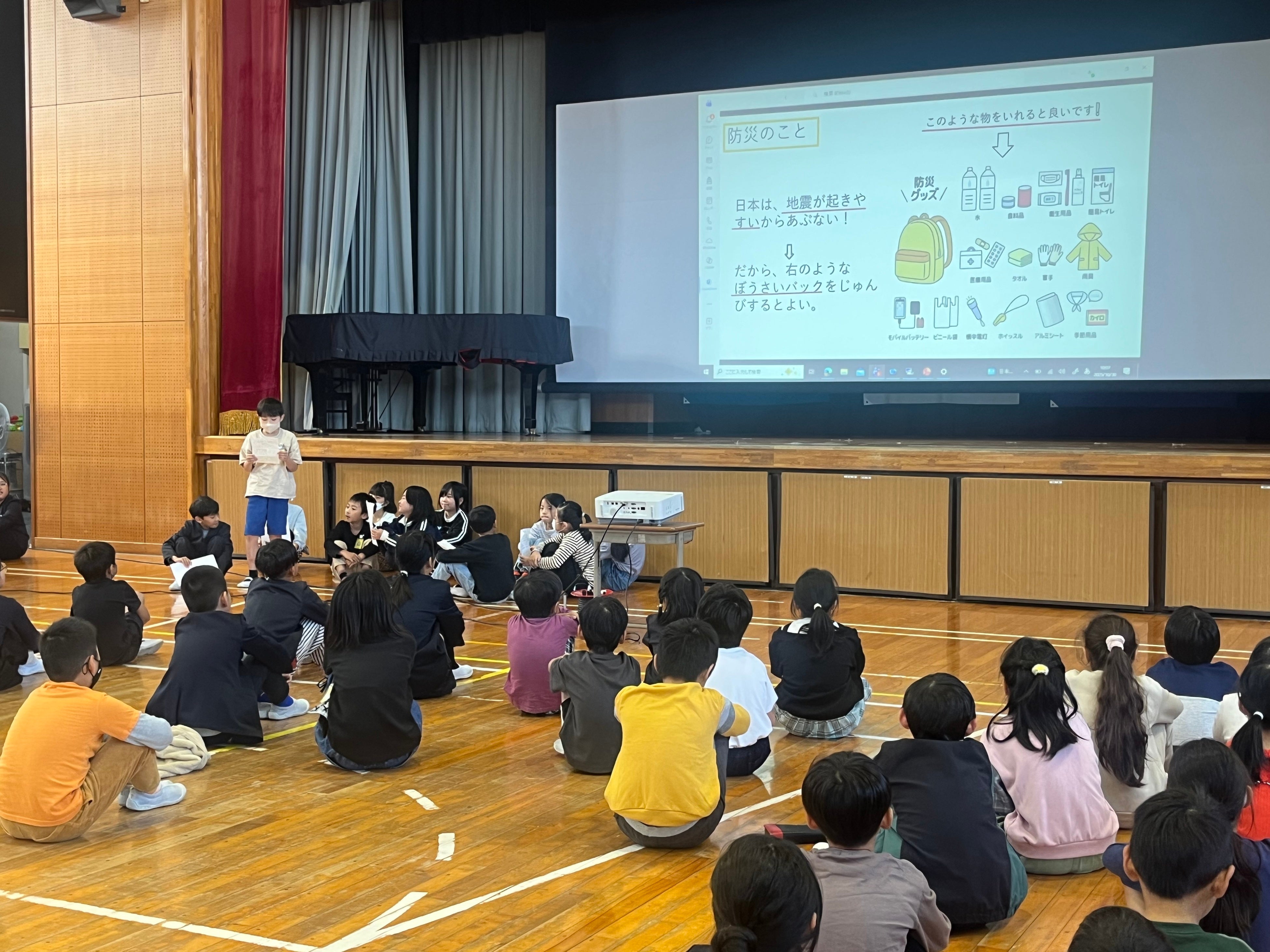さらに、「防災BOOK」を日本語と英語でまとめ、避難のときに必要なものや身を守る方法を、海外の子どもたちや避難者にも伝えられるように工夫しました。これは「災害は国や言語が違っても、命を守るという意味では同じ」というメッセージを、子ども自身の言葉で届ける取り組みです。
