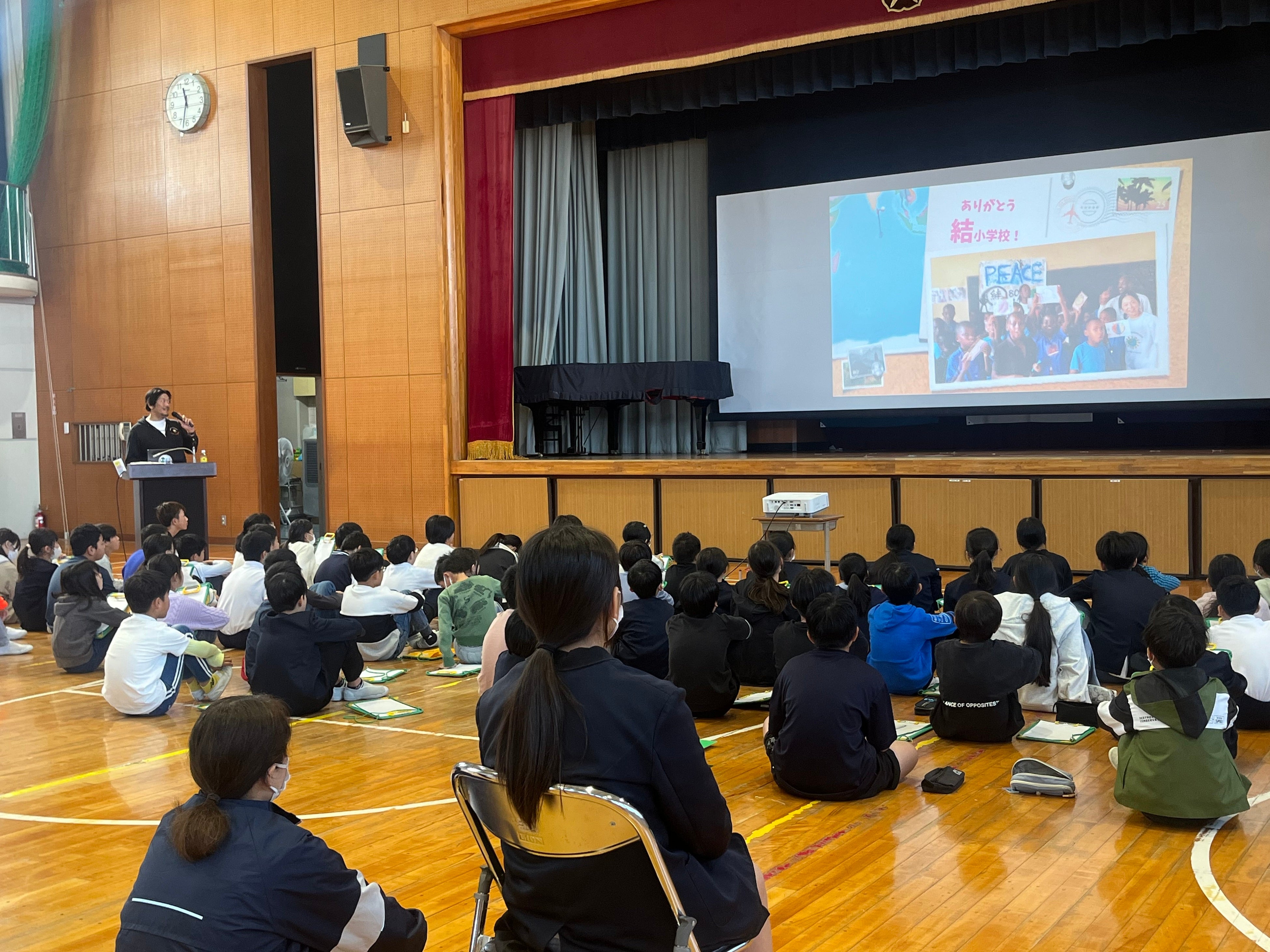 結小学校では、今年6月の初回講演をきっかけに、1年生から6年生まで全学年が「自分たちの授業の成果を、世界の誰かの役に立つ形にする」という共通ゴールを持って学びを進めてきました。今回の発表会では、各学年の取り組みが「この冬、実際に海外の現場で使われるもの」として全校に共有され、12月からの国際実装に向けた準備が大きく前進しました。