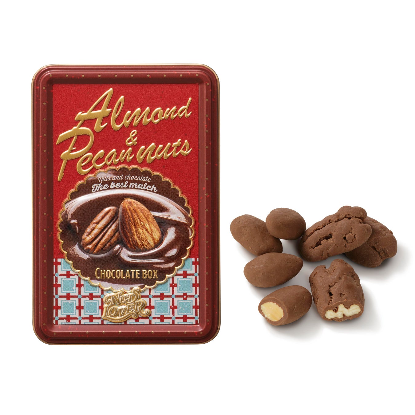 ほんのりとした甘みとコクが後を引くペカンナッツとカリッとしたアーモンドに、まろやかなミルクチョコレートをたっぷりとかけました。味わいの違う2種類のナッツとチョコレートのハーモニーをお楽しみください。手元に置いておきたくなるようなかわいい缶もポイントです。