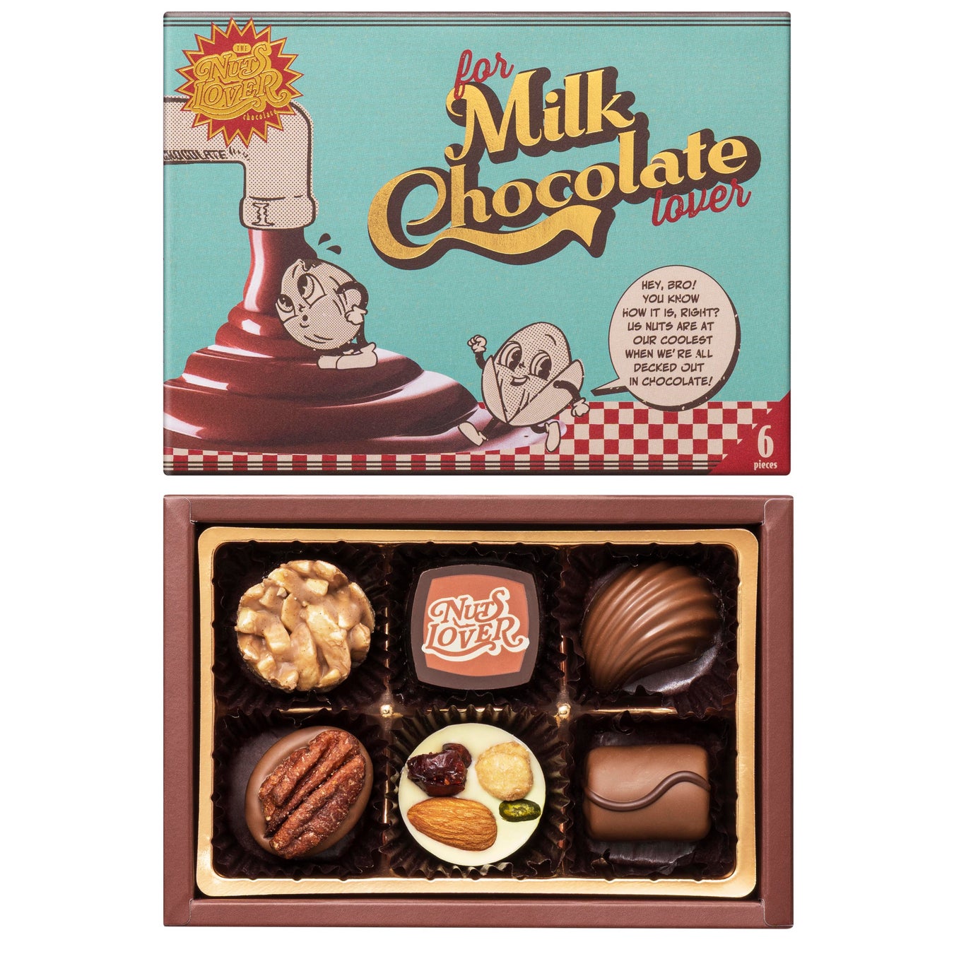 ヘーゼルナッツやペカンナッツなどを、相性の良いチョコレートと合わせた6種類の味わいが楽しめるアソート。