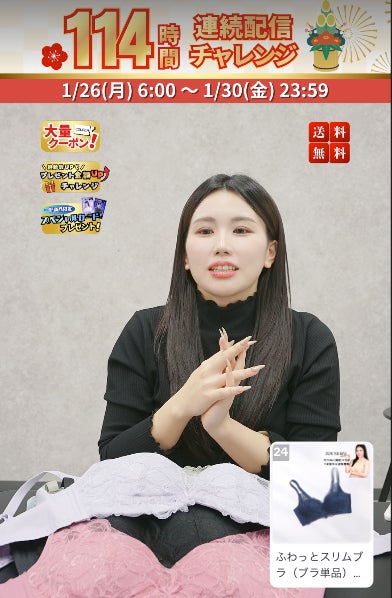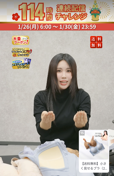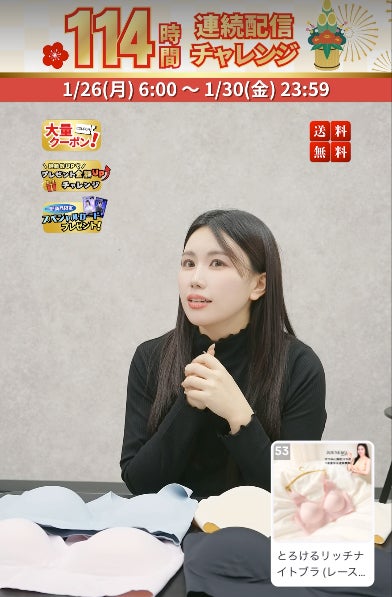 ■114時間のライブ配信の中で「CHARM MAKE BODY」のブラジャーを販売!