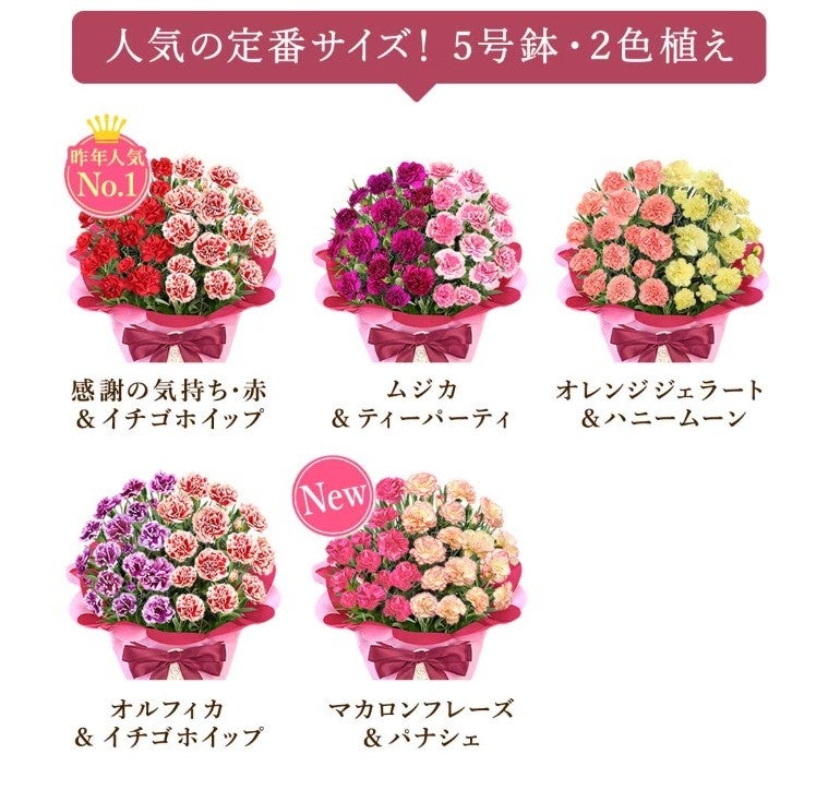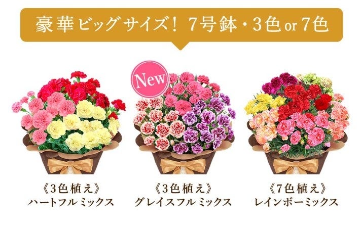 それぞれ異なる色合いや咲き方を楽しめる組み合わせとなっており、母の日ギフトとしての選択肢がさらに広がります。