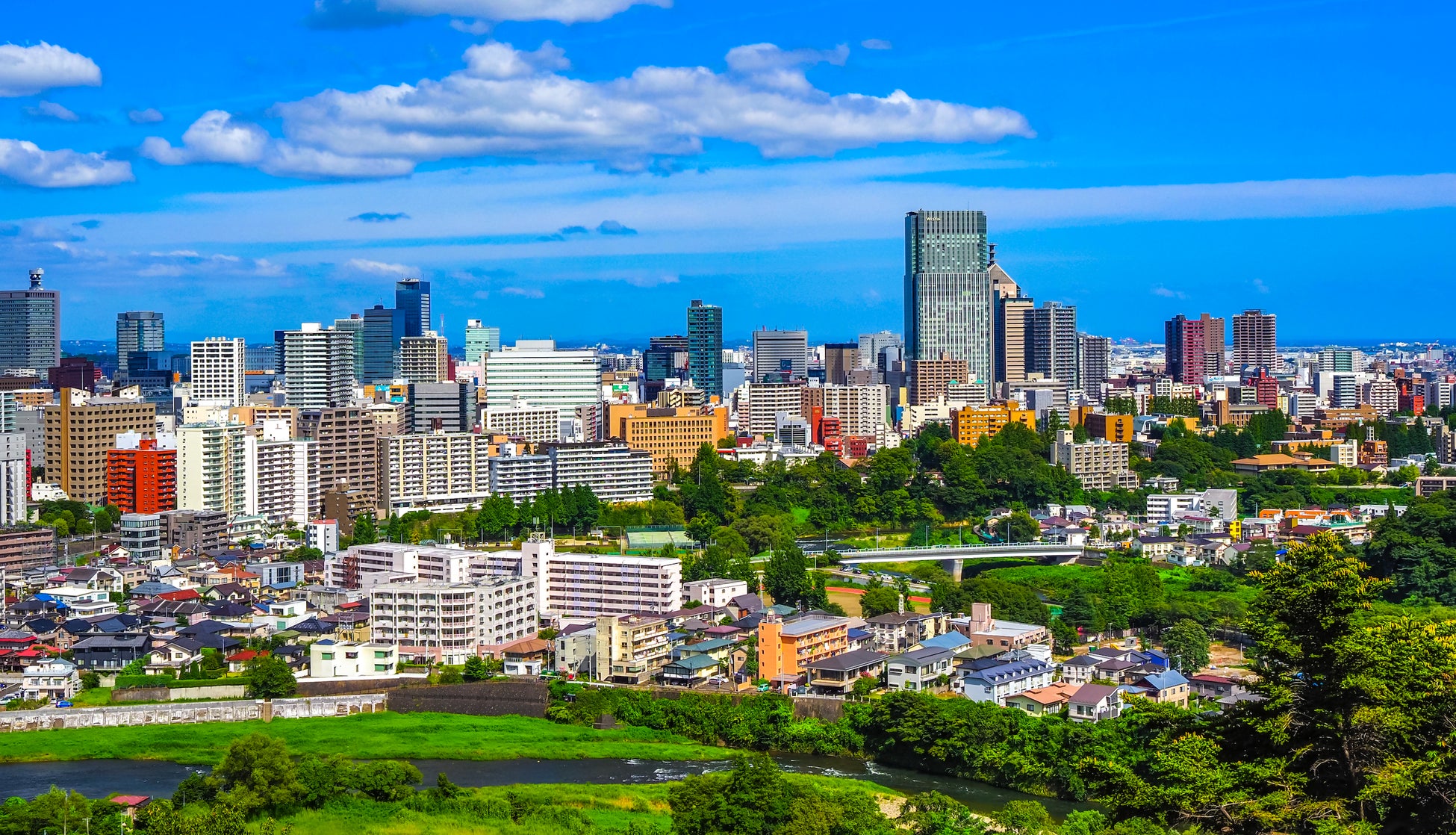 青葉山(仙台城跡)から眺める仙台市街。伊達政宗公と同じ視線で街を見下ろすと、歴史の息吹と現代の活気が見事に混ざり合っている。