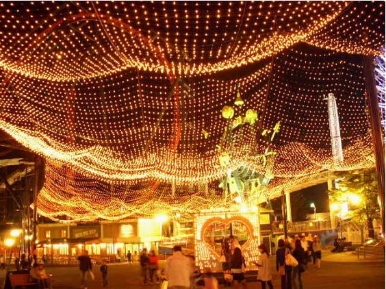 自由に回遊出来る「ウォーターイルミネーション」や、その周囲200mを取り囲む「光の滝」など見所満載です。