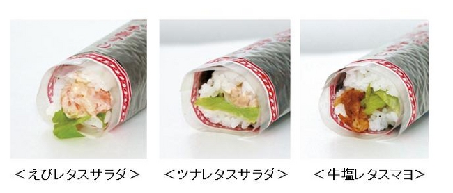 手巻き寿司Aセット(えびレタスサラダ・ツナレタスサラダ・牛塩レタスマヨ) 315円