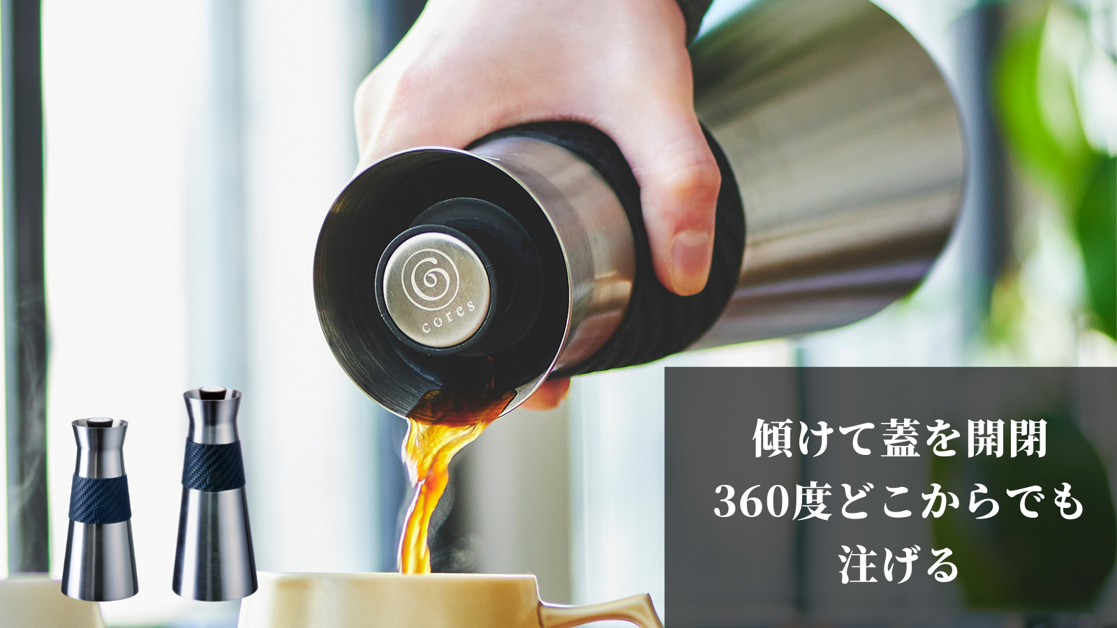 傾けて開閉するスタイリッシュで個性的なサーモポット