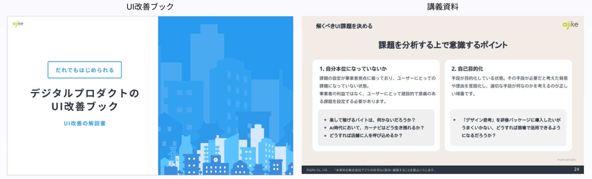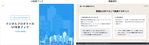また、当日利用するUI改善ブックをお持ち帰りいただき、他サービス等で何度もご利用いただくことが可能です。