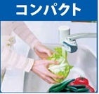 浄水器本体は、当社従来品よりも横幅を約2cmサイズダウンした(※)、コンパクトサイズの切替器を採用。シンクを広びろと使うことができます。※当社MK305Tと比較。