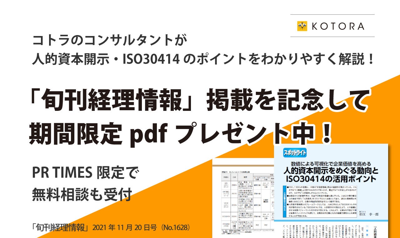 人的資本開示・ISO30414のポイントをわかりやすく解説!「旬刊経理情報」掲載を記念して、期間限定pdfをプレゼント!PR TIMES限定で無料相談も受付