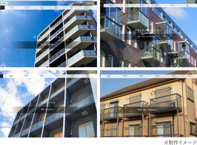 2018年より不動産会社向けに提供を開始した分譲マンションの物件特設サイトの制作サービスが起点となっており、4年間で300サイトを超える制作実績・ノウハウを活用し、2021年より賃貸マンション・アパート向けにも展開を拡大。2022年10月現在で、分譲物件・賃貸物件あわせて600サイト以上の制作実績のあるサービスです。
