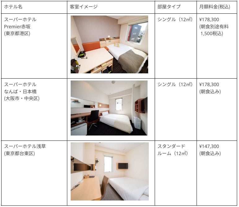 グッドルーム、スーパーホテルとマンスリープラン提携開始