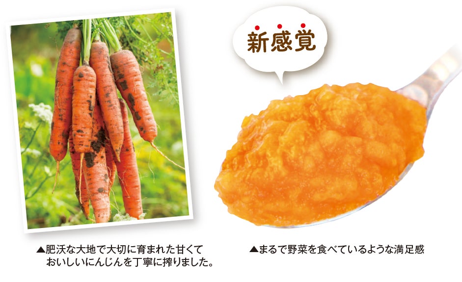 特に味の決め手となるにんじんは、風味や香りに深みを出すために、2種類の異なる製法のものを組み合わせることで、「コク」と「とろみ」を極めた濃厚な味わいに仕上げています。
