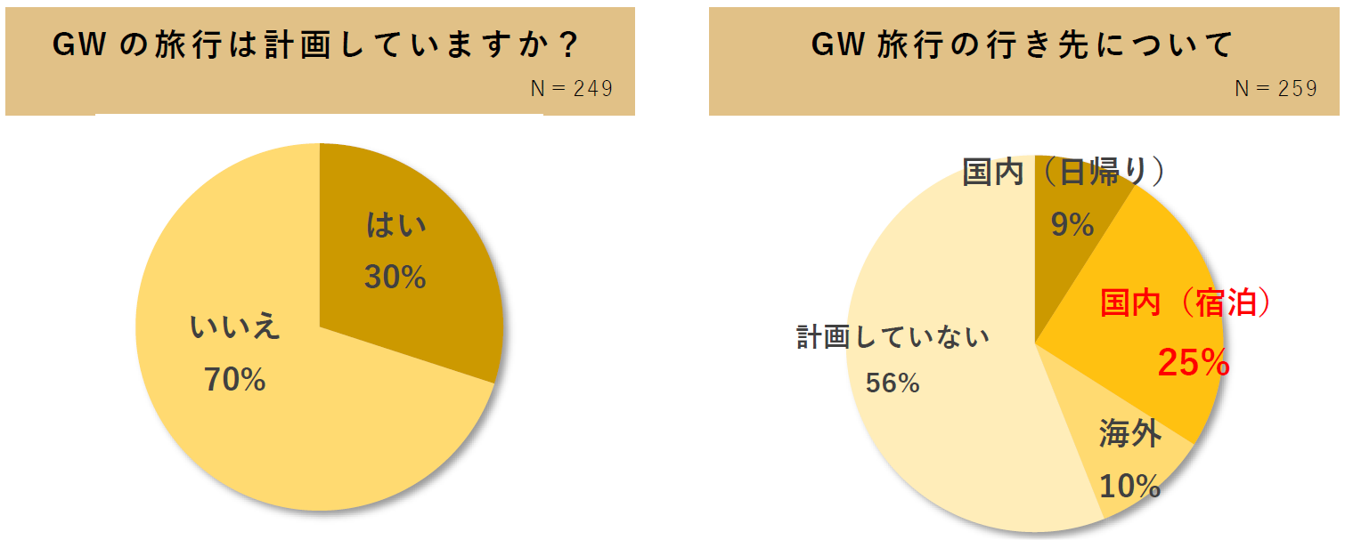 - 今年のゴールデンウィークに旅行を計画している人は約30%。