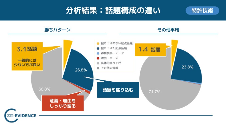 ・分析手法:コグニティ独自の「CogStructure」(特許第6573321号)により自然言語の構造をスコア化