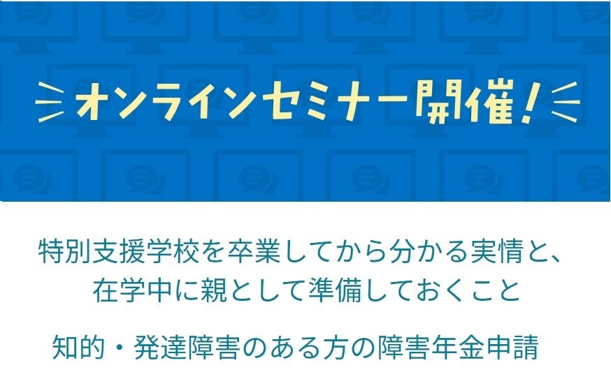 卒業・入学シーズンに向け『特別支援学校卒業後の実情』・『知的・発達障害のある方の障害年金申請』のオンラインセミナーを開催