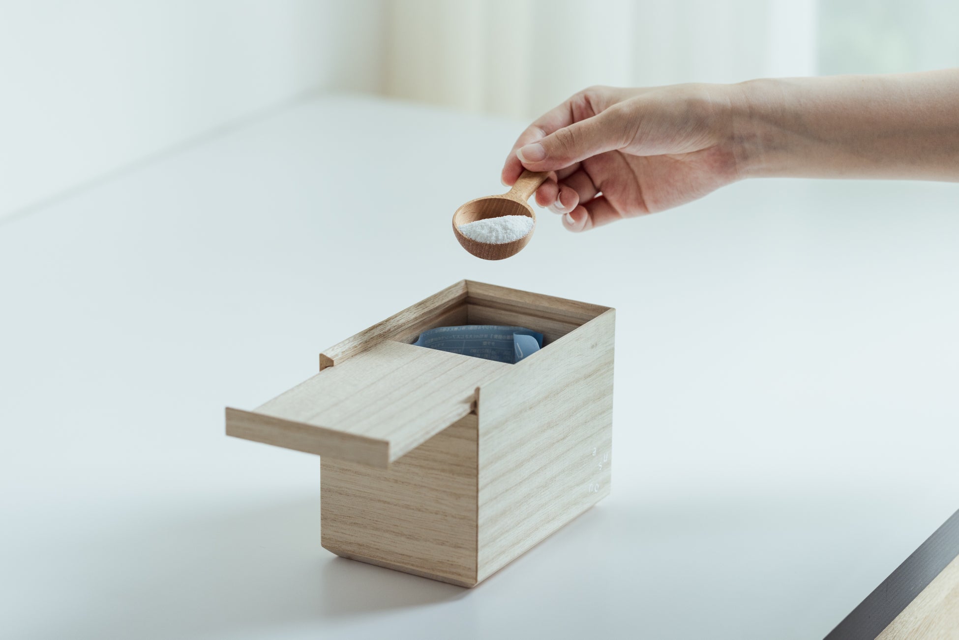 1回の使用量も一般的な45L容量あたり15g(約大さじ1弱)とコンパクトながら1袋で1ヶ月毎日使えます。冷たい水(0℃)でも溶けやすく、かつて粉末洗剤にありがちだった溶け残りが起きにくく、寒冷地でも使いやすい仕様です。