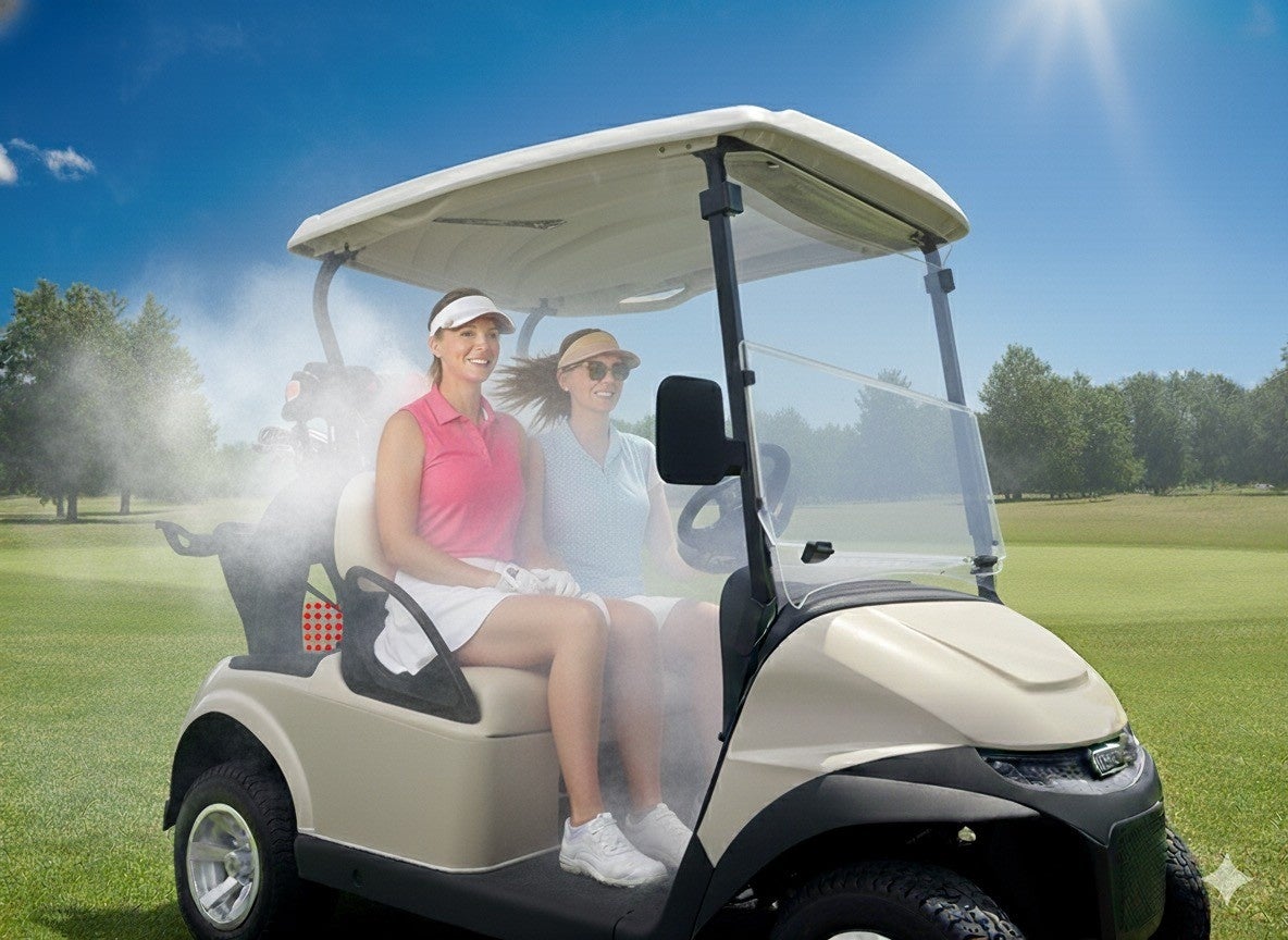 年間を通じて高温多湿な気候環境にある沖縄では、夏季に限らずプレー時の暑さ対策が重要な課題となっています。特に近年は猛暑の影響により、プレイヤーの安全性確保や熱中症対策の必要性が高まっています。【OASISプラス】は、沖縄特有の高温・高湿度環境下でも快適なラウンドを可能にする冷房性能を備えており、プレー中の身体的負担を軽減し、安全で快適なゴルフ体験を提供します。