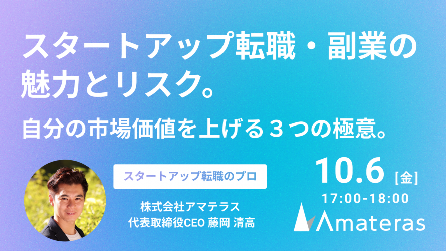 アマテラスは『日本からGoogle・Facebookを100社創出する』というビジョンを掲げ、アーリーステージに特化したスタートアップ専門の転職・副業サービスを運営しています。今後も優れたスタートアップ企業とスタートアップ参画を目指す方々のマッチングをサポートして参ります。(https://amater.as/)(https://mamater.as/)