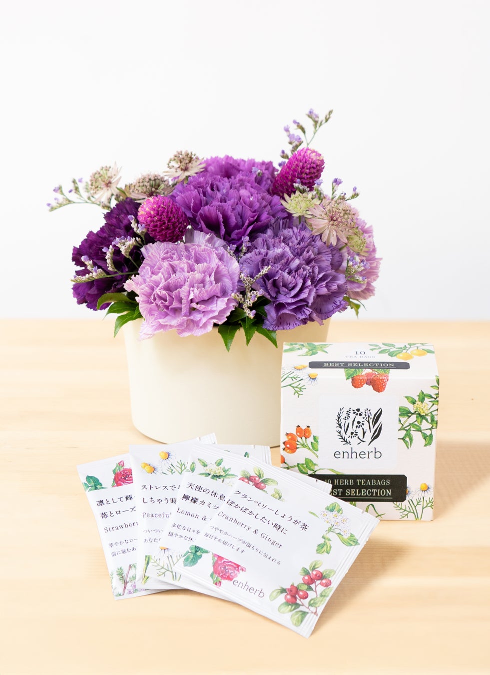 サントリーグループのハーブ専門店「enherb」とコラボレーションし、対象期間中にご注文いただいたお客様へ、「enherb」の4種類のハーブティーのうち1種類(1包)をランダムで、プレゼントいたします。