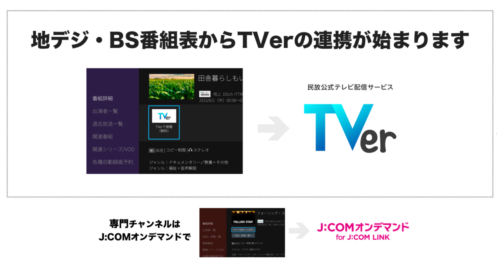 GガイドのOTTリンクがJ:COMのセットトップボックスに対応 地上波放送やBS放送の過去放送をGガイドからシームレスにTVerで視聴可能に