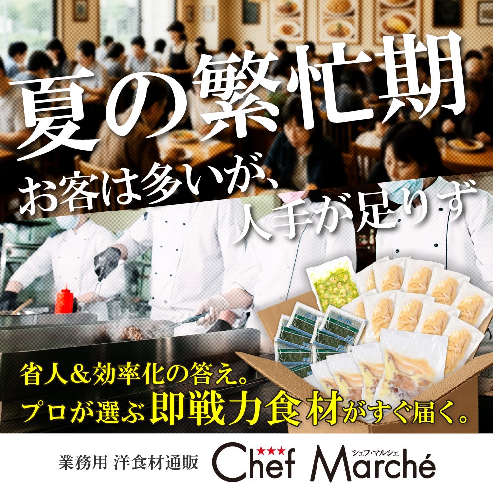 シェフマルはこのタイミングで、「まずは試したい」「仕入れ先を広げたい」という現場の声に応えるべく、本キャンペーンを企画しました。業務用に適した冷凍のスターター商品を、初回限定・特別価格で提供することで、夏の仕入れ強化と業務効率化を支援します。