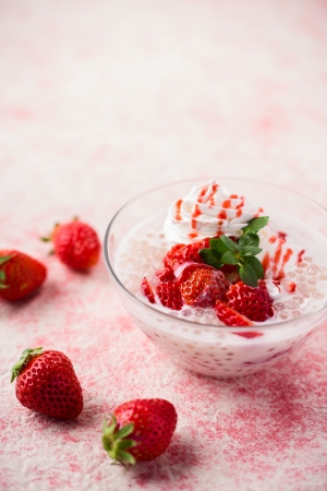 モンスーンカフェの大人気デザート“マンゴータンゴ”の春限定バージョン。 今が旬のフレッシュないちごをたっぷり使って、ココナッツミルクとココナッツアイスをベースに、タピオカ、練乳、生クリーム・いちごプリンなど贅沢に閉じこめました。 |