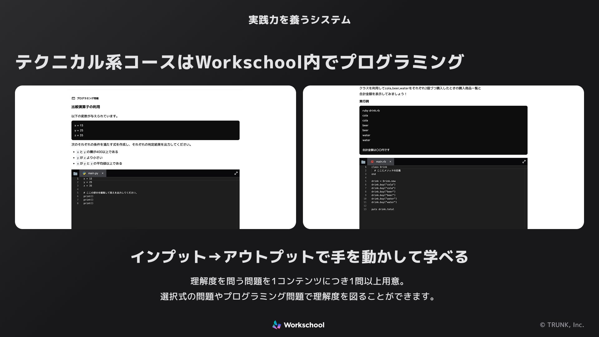 TRUNK株式会社では、e-Learningシステム「Workschool」を通じて、IT企業様をはじめとする多くの現場から「C#を基礎から学べる研修コンテンツがほしい」という声を伺ってきました。