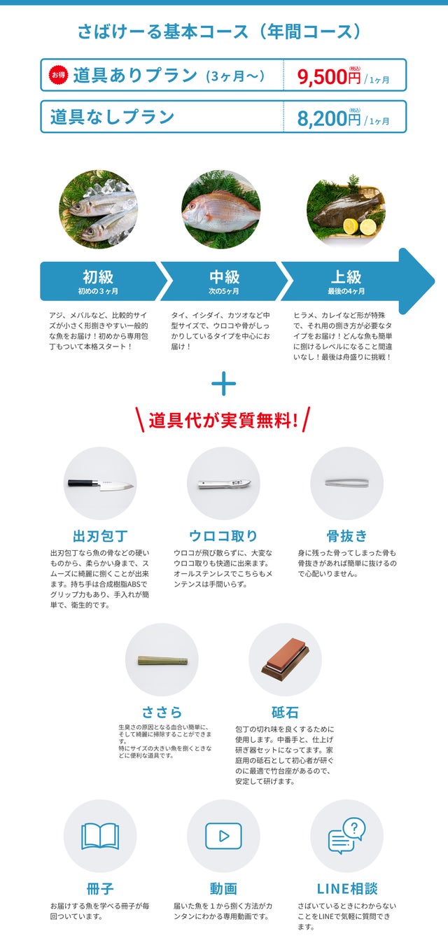 そのため、サカマでは始めての人でも手軽に魚がさばけるようになるための、最適なコースを準備しました。