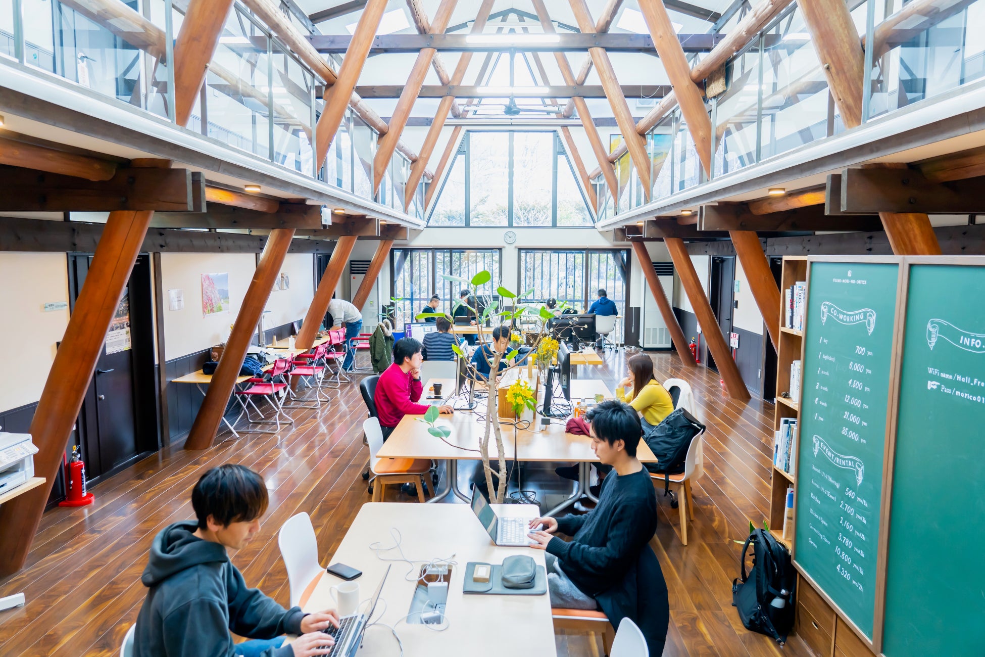 コワーキングスペース、個室型オフィス、会議室、食堂・キッチン、さらには宿泊棟を備えた長野県諏訪郡富士見町の複合施設です。都心の企業にとってのサテライトオフィスやテレワーク拠点として、地域に暮らす方々にとっての“公民館”的スペースとして、里山に住む人々と都会に住む人々をつなぎ、新しい仕事や働き方、暮らし方を創り出せる場を目指しています。