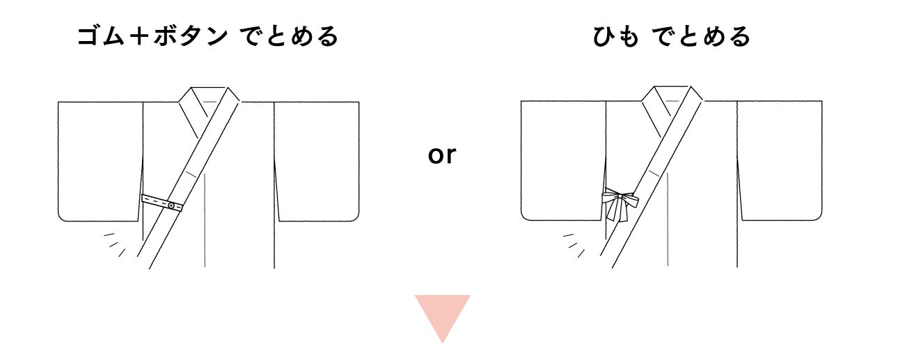 必要なのは、きものだけ(※)。付属のパーツを数カ所留めることで、あっという間に着られます。あれこれ小物を準備する必要がないので、ゆっくり着る時間がなくても大丈夫。もちろん着付けを覚えなくても着られます。