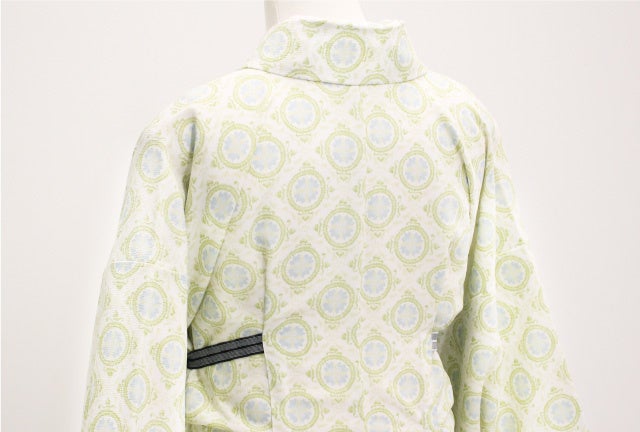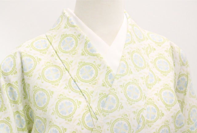 長襦袢を着なくても襟元に半衿が見えるよう、取り外しできる衿をつけています。(衿なしも可)